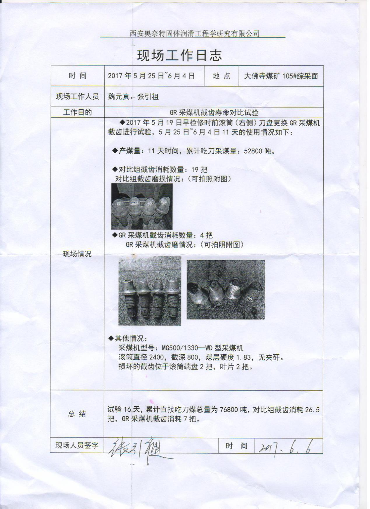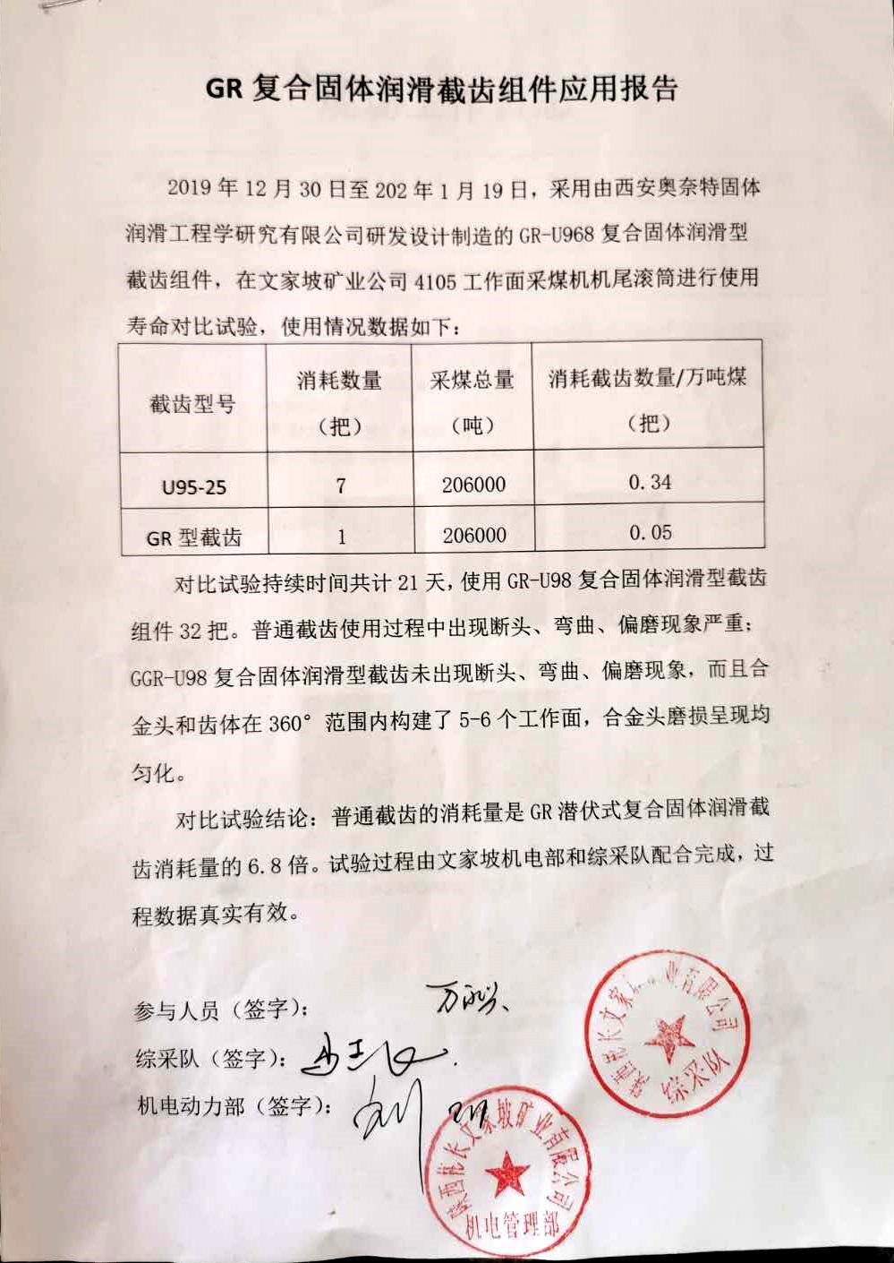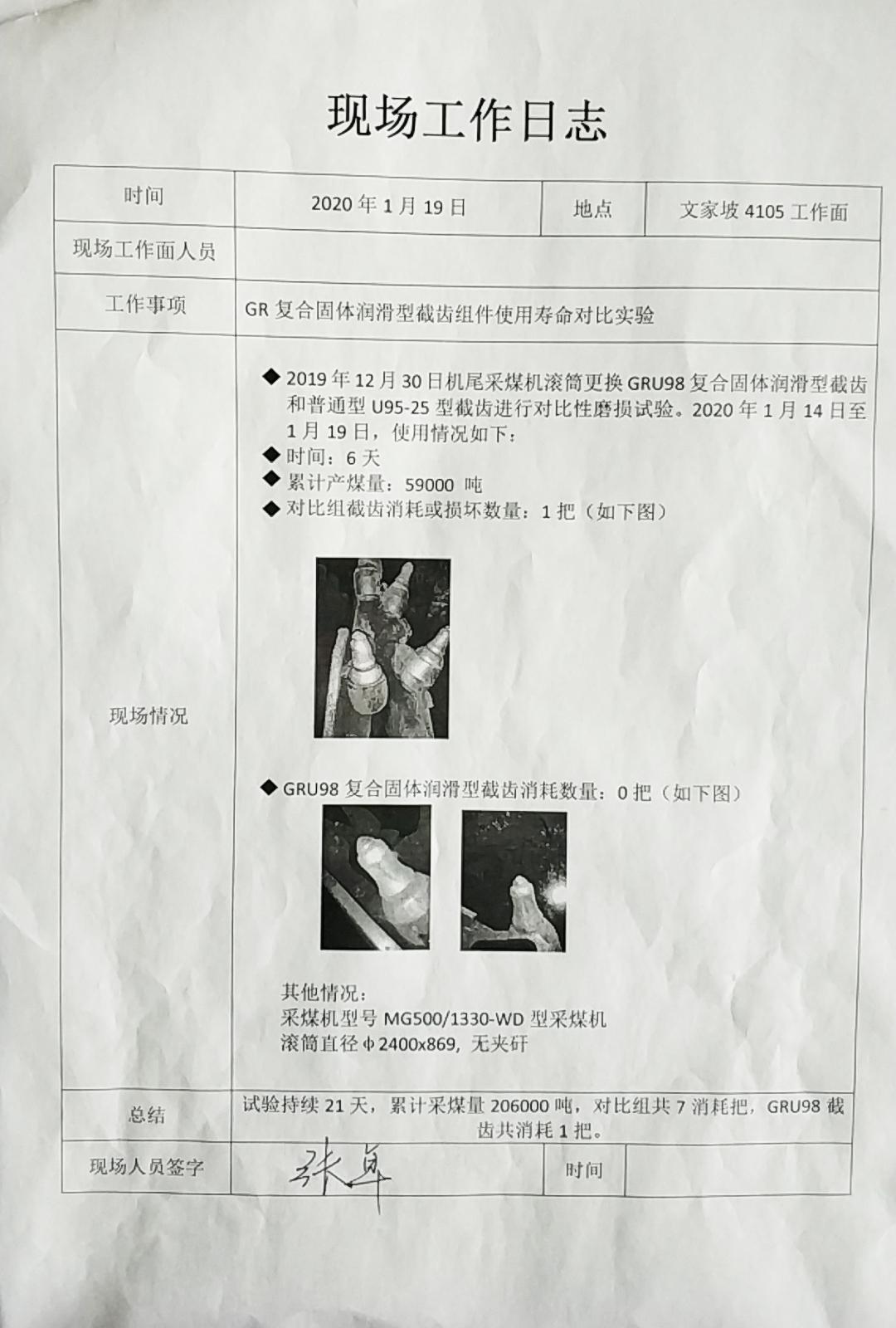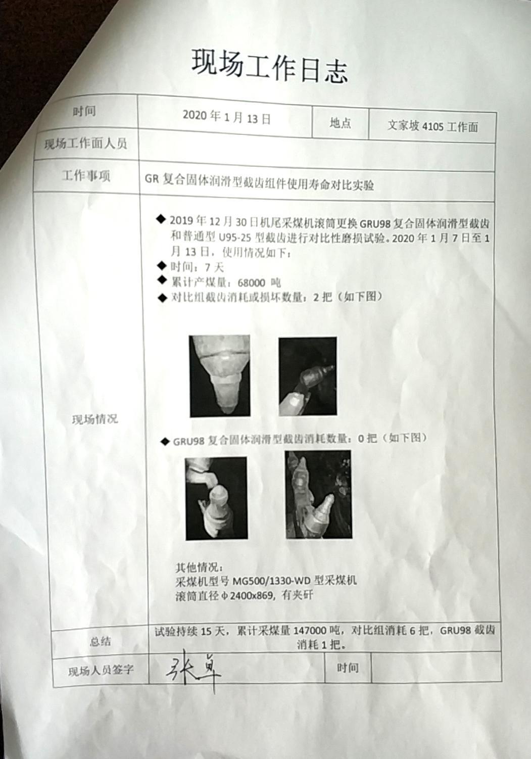 截齒應(yīng)用報告