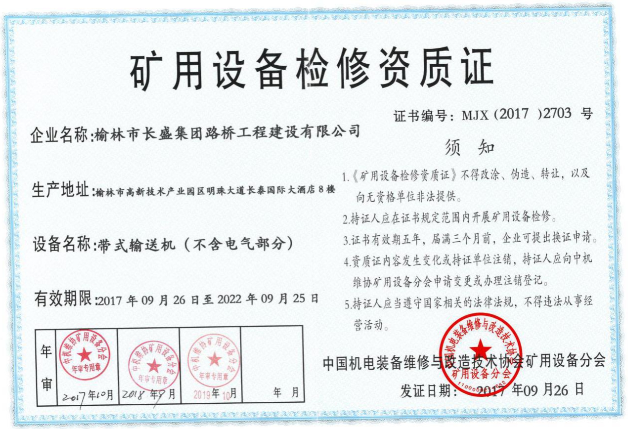 礦用設(shè)備檢修資質(zhì)-帶式輸送機(jī)