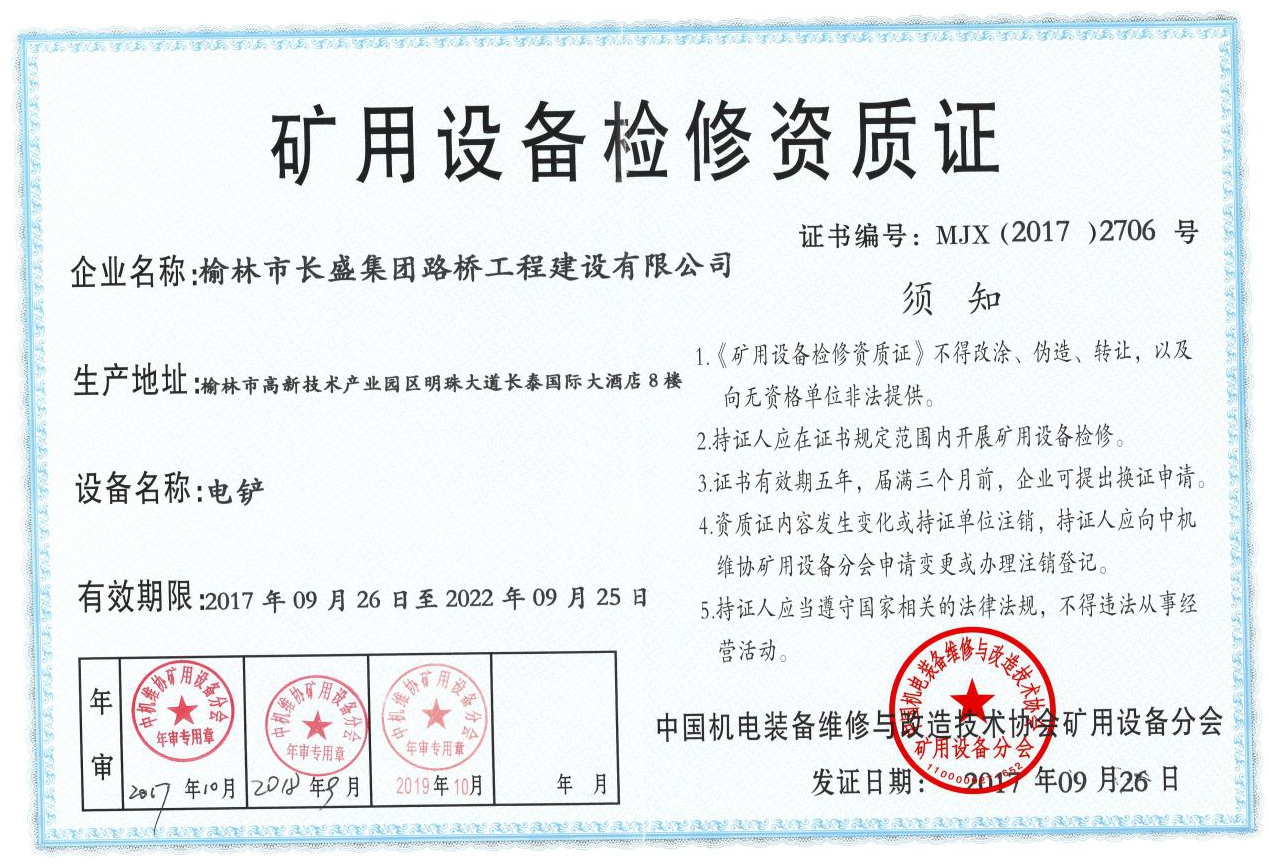 礦用設(shè)備檢修資質(zhì)