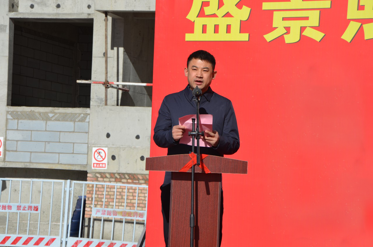 徐遼飛在致辭中向奮戰(zhàn)在一線的各參建單位表示衷心的感謝和誠摯的敬意。他指出,盛景熙苑主體結(jié)構(gòu)的順利封頂,標(biāo)志著項(xiàng)目工程建設(shè)取得了關(guān)鍵性階段成果,為后續(xù)工作開了個好局。他希望,各參建單位進(jìn)一步壓實(shí)主體責(zé)任,加強(qiáng)協(xié)作,確保項(xiàng)目按期、保質(zhì)、順利竣工。