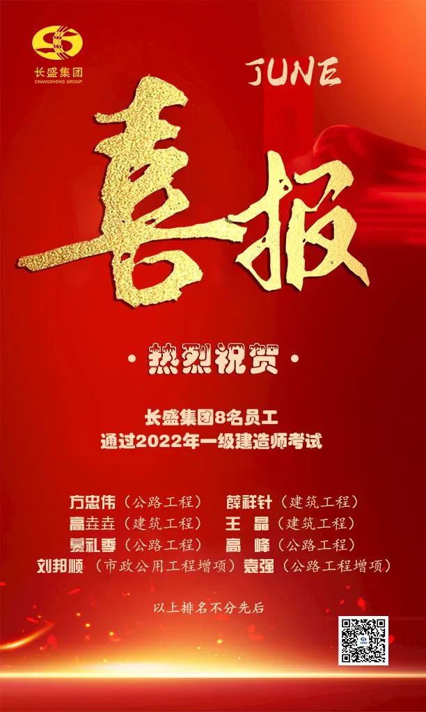 喜報(bào)!長(zhǎng)盛集團(tuán)8名員工通過(guò)2022年一級(jí)建造師考試