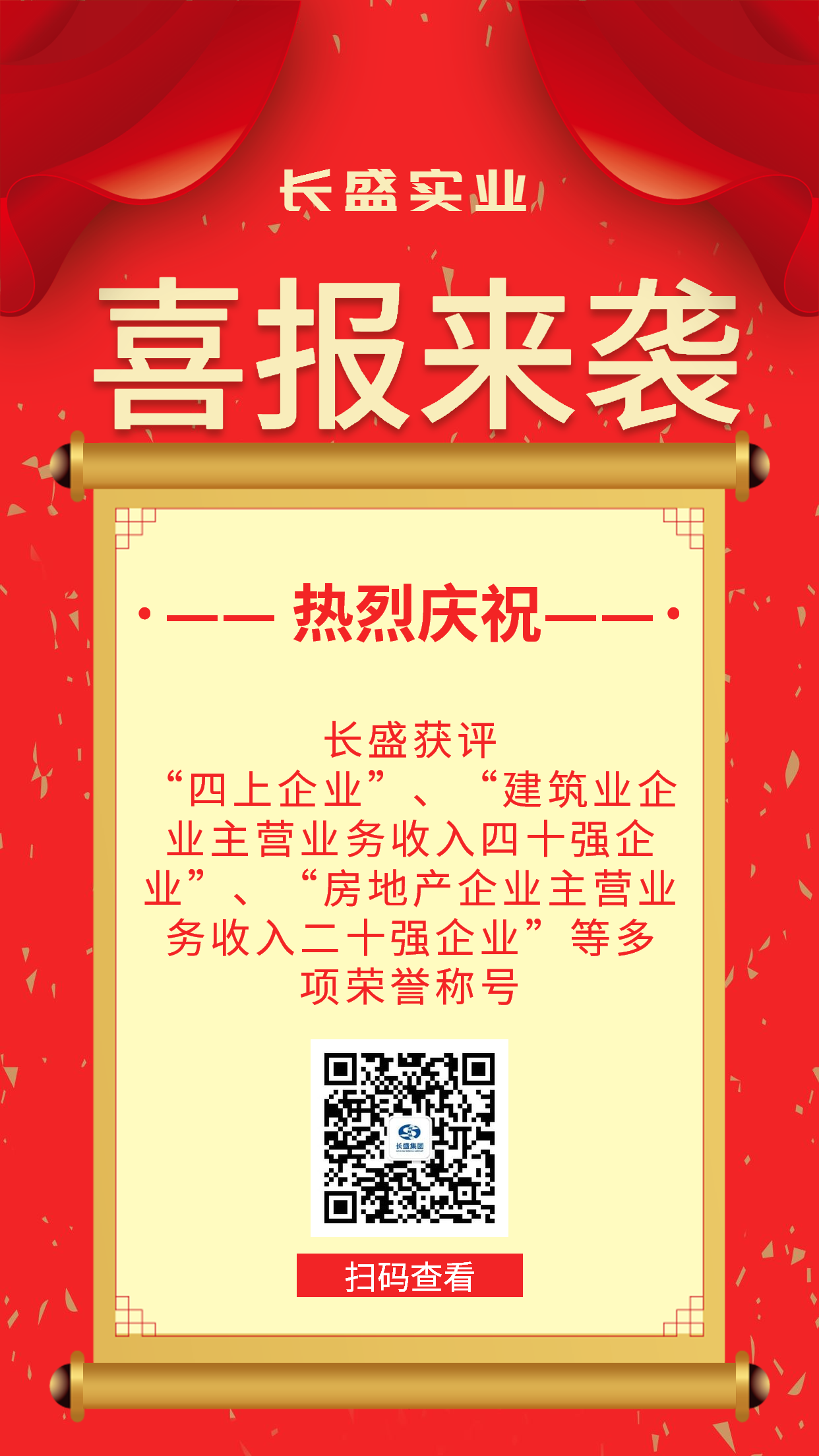 【喜報(bào)】長盛獲評“四上企業(yè)”、“建筑業(yè)企業(yè)主營業(yè)務(wù)收入四十強(qiáng)企業(yè)”、“房地產(chǎn)企業(yè)主營業(yè)務(wù)收入二十強(qiáng)企業(yè)”等多項(xiàng)榮譽(yù)
