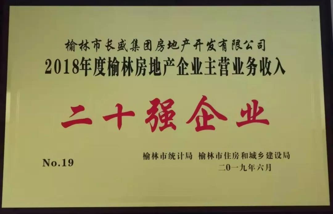 “榆林市長盛集團(tuán)房地產(chǎn)開發(fā)有限公司”獲評“2018年度榆林房地產(chǎn)企業(yè)主營業(yè)務(wù)收入二十強(qiáng)企業(yè)”