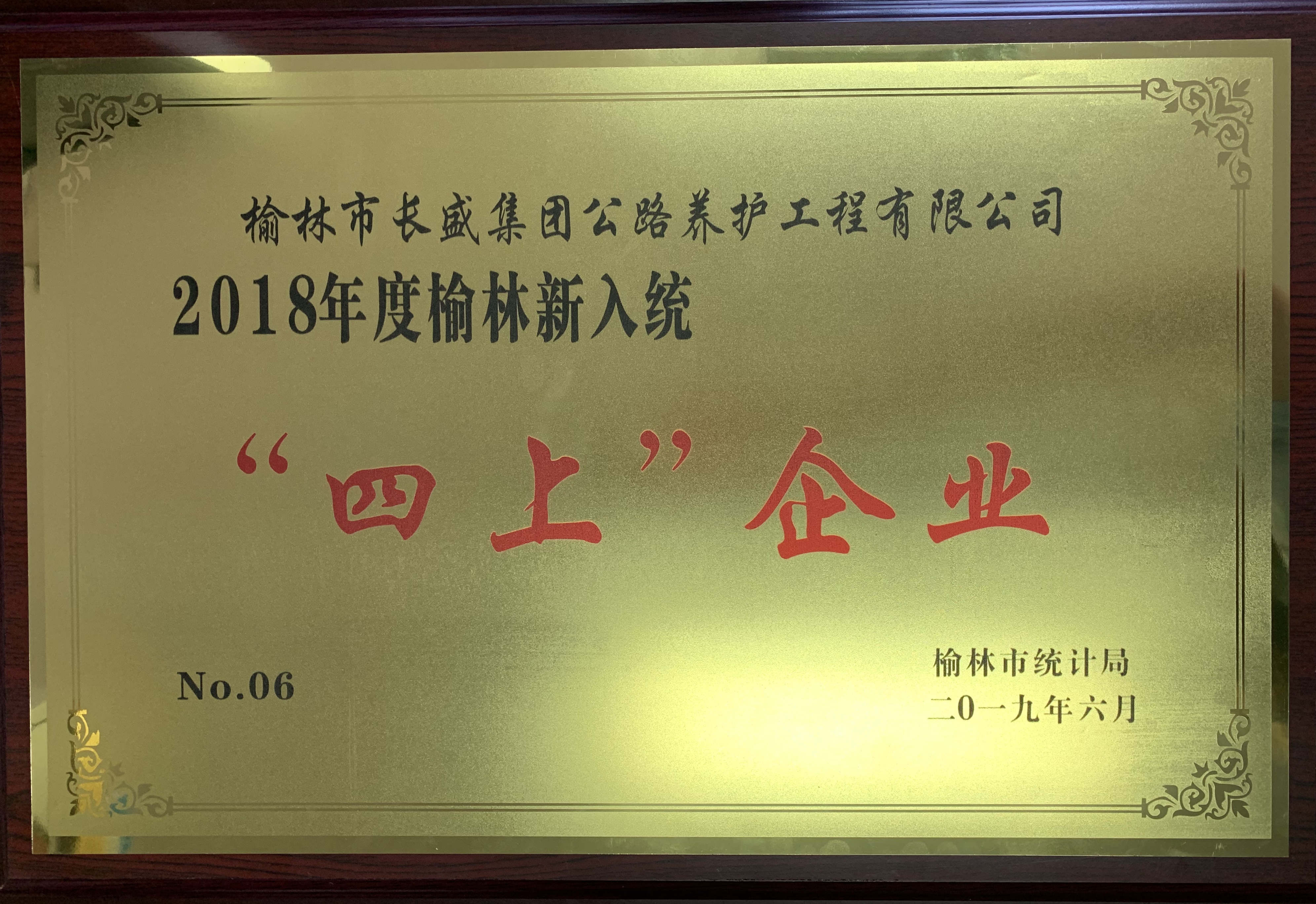 “榆林市長盛集團(tuán)公路養(yǎng)護(hù)工程有限公司”獲評“2018年度榆林新入統(tǒng)四上企業(yè)”