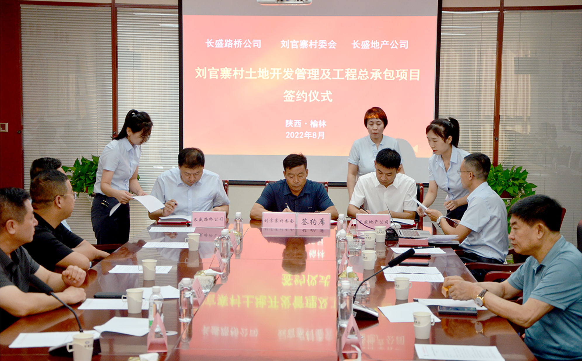 8月3日下午,榆林市長盛集團路橋工程建設有限公司、榆林市長盛集團房地產(chǎn)開發(fā)有限公司與榆林市榆陽區(qū)朝陽路街道劉官寨村村民委員會舉行“土地開發(fā)管理及工程總承包”協(xié)議簽約儀式。長盛集團董事長徐團林、董事長助理黨世明、總經(jīng)理徐永飛、副總經(jīng)理黃建梅、副總經(jīng)理徐遼飛;榆陽區(qū)朝陽路街道辦事處主任段彥飛、司法所所長楊璐;劉官寨村村民委員會書記陳忠華、副主任陳振林、副書記高玉龍、監(jiān)委會主任林建軍、婦女主任王換秀、村兩委會成員代表和公司部分管理人員出席了簽約儀式。