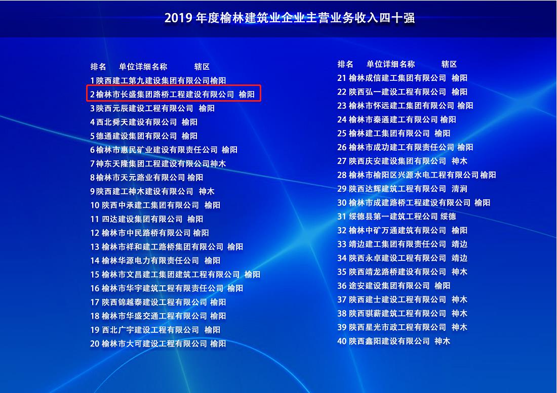 長盛路橋公司入榜榆林市“建筑企業(yè)主營業(yè)務收入四十強”和“民營企業(yè)主營業(yè)務收入百強”