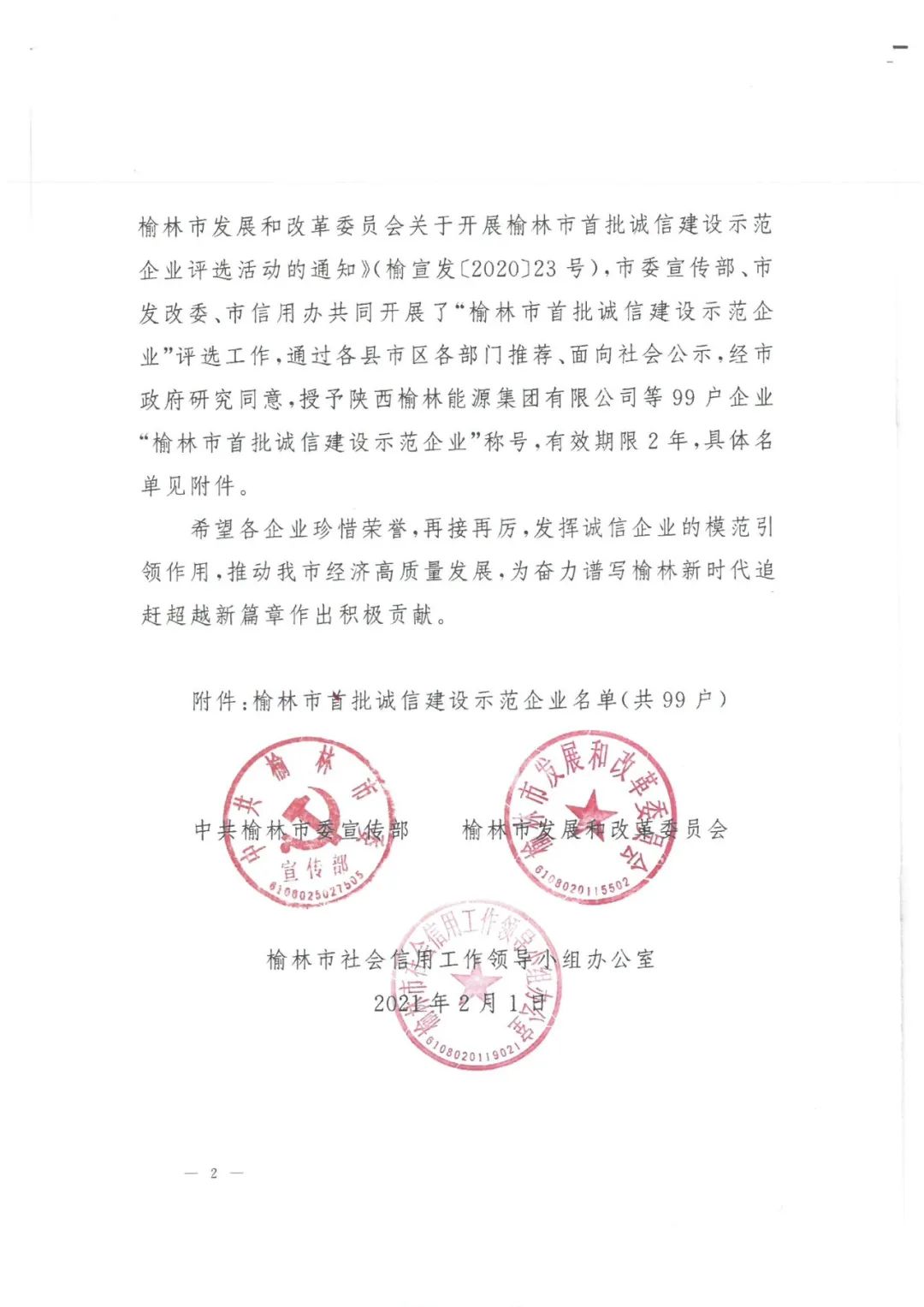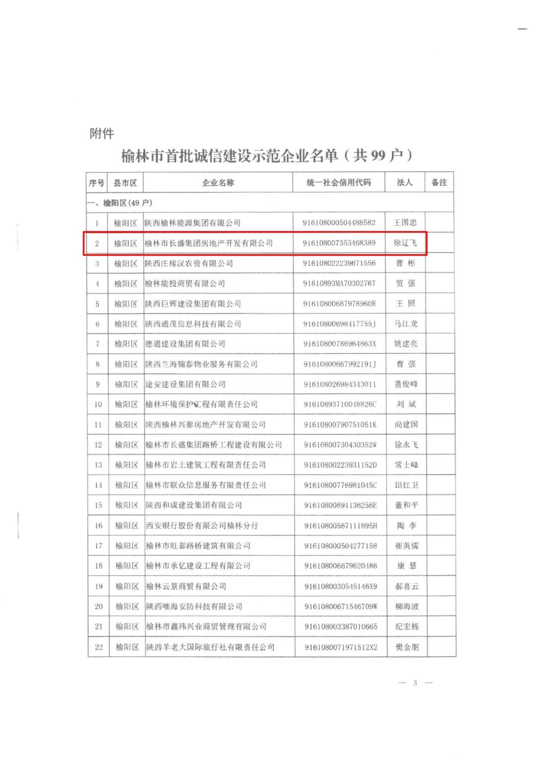 長(zhǎng)盛地產(chǎn)公司榮獲“榆林市首批誠(chéng)信建設(shè)示范企業(yè)”稱號(hào)