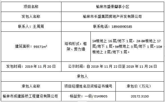 榆林市盛景蘭亭小區(qū)直接發(fā)包結(jié)果公示